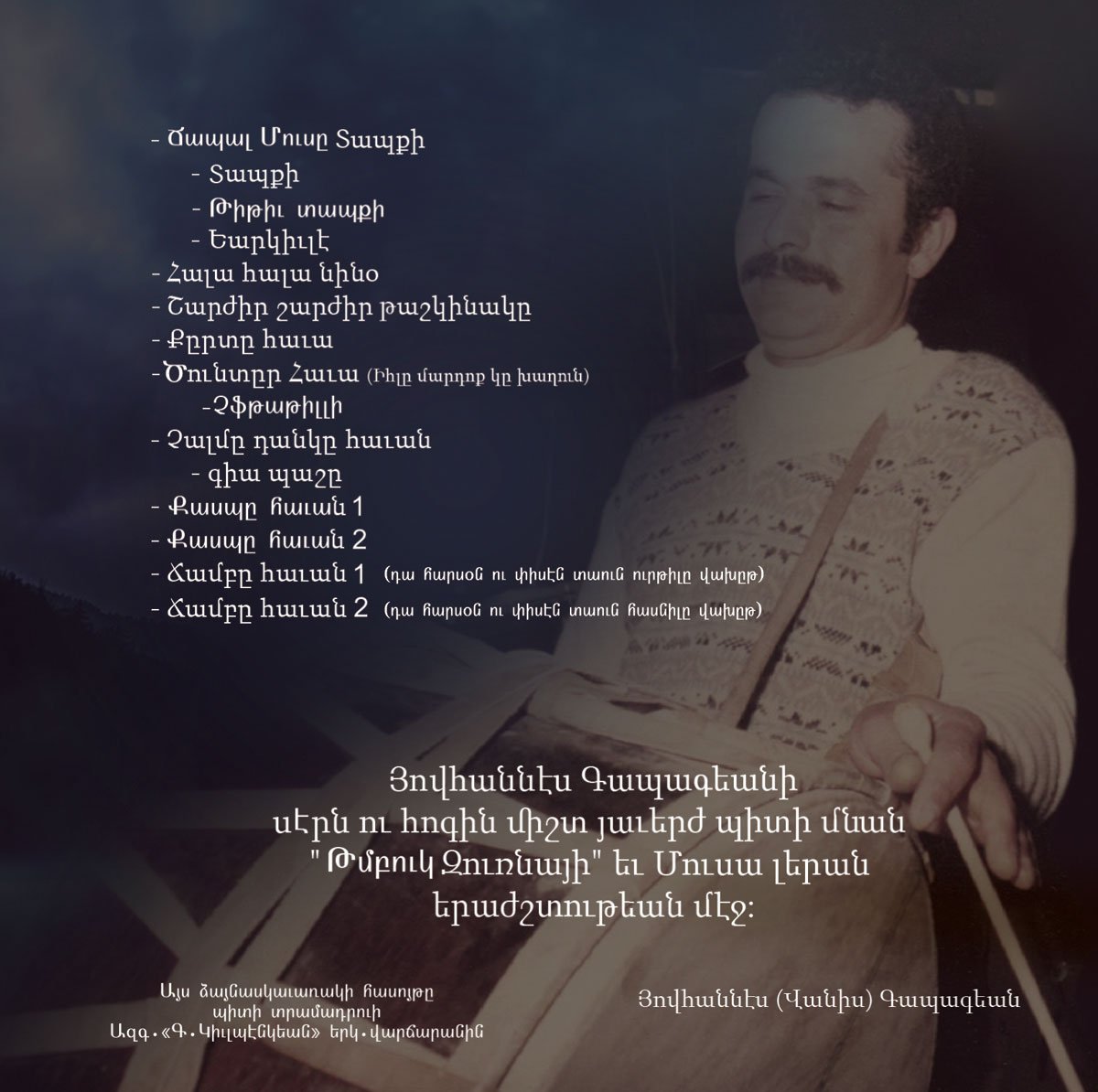 Յովհաննէսը սովորական զուռնաճի չեղաւ. ան կատարեց Մուսա Լերան պարեղանակները շատ հարազատ, զուլալ եւ առնական կերպով: Այդ է պատճառը, որ այս ուրբաթ, 13 սեպտեմբերին կը թողարկուի անոր ձայնասկաւառակը, հակառակ անոր որ ինք մեկնած է այս աշխարհէն: